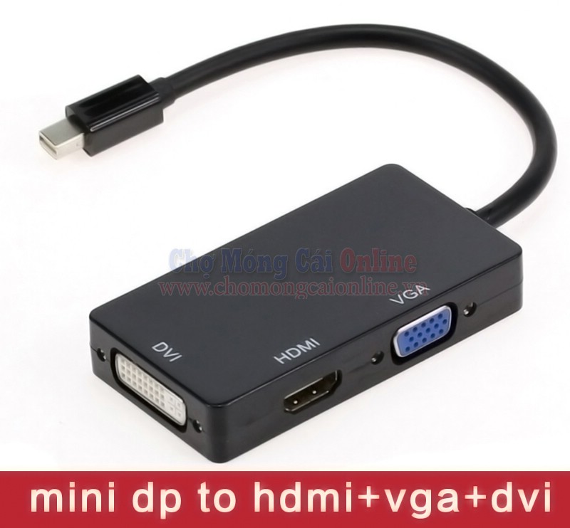 Cáp chuyển đổi Mini DisplayPort sang HDMI+VGA+DVI 3 in 1 là giải pháp tuyệt vời cho việc chuyển đổi các tín hiệu của một thiết bị có cổng ra Mini DisplayPort sang một thiết bị có cổng vào HDMI/VGA/DVI như TV, máy chiếu...