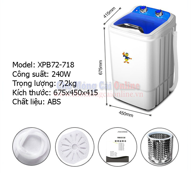 Thân máy làm bằng chất liệu nhựa cao cấp, bền đẹp với phần nắp mở cửa trên tiện lợi khi sử dụng. Thiết kế nhỏ gọn của máy không chiếm quá nhiều không gian và góp phần tiết kiệm điện, nước so với máy giặt cỡ lớn.