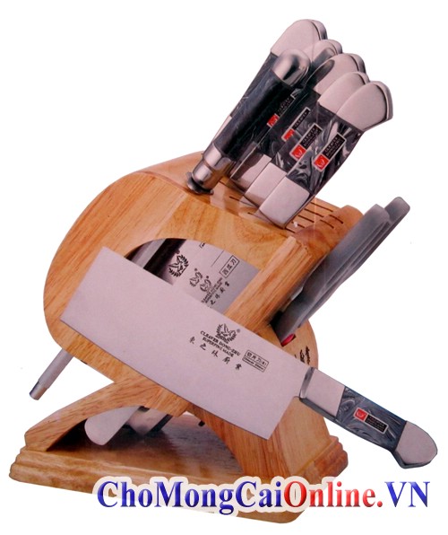 | Đặc điểm | Bộ dao bằng thép không gỉ (Stainless Steel - 2CR13) gồm 7 món: - Dao thái lớn - 8” chef’s knife 2,5mm. - Dao thái nhỏ - 8” slicer 2,5mm. - Dao tỉa - 5” utility knife 2,0mm. - Dao tỉa nhỏ - 3,5” paring knife 2,0mm. - Thanh mài dao - 8” sharpener 1,5mm. - Kéo. | |