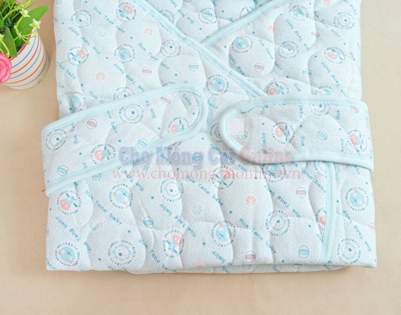 Chăn ủ sơ sinh với chất liệu cotton hai mặt vô cùng mềm mại, êm ái với làn da nhạy cảm của các bé sơ sinh. Ở giữa sản phẩm là một lớp bông tự nhiên mỏng, giữ ấm cho bé. Sản phẩm có thiết kế thông minh với đai dính, kiểu dáng tiện lợi như trên vừa có tác dụng giữ ấm,vừa giữ cho lớp chăn ủ không bị xô lệch khi bế bé.