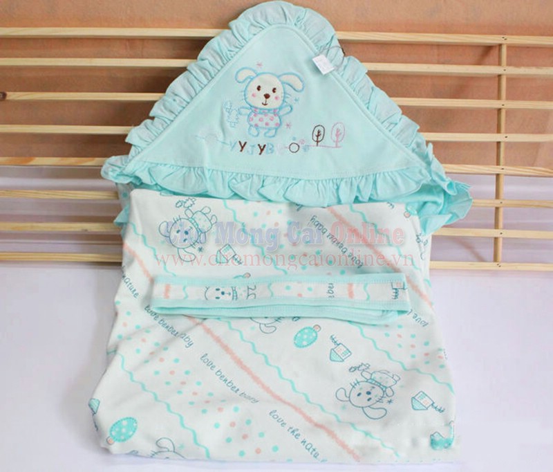 Chăn ủ sơ sinh với chất liệu cotton hai mặt vô cùng mềm mại, êm ái với làn da nhạy cảm của các bé sơ sinh. Ở giữa sản phẩm là một lớp bông tự nhiên mỏng, giữ ấm cho bé. Sản phẩm có thiết kế thông minh với đai dính, kiểu dáng tiện lợi như trên vừa có tác dụng giữ ấm,vừa giữ cho lớp chăn ủ không bị xô lệch khi bế bé.
