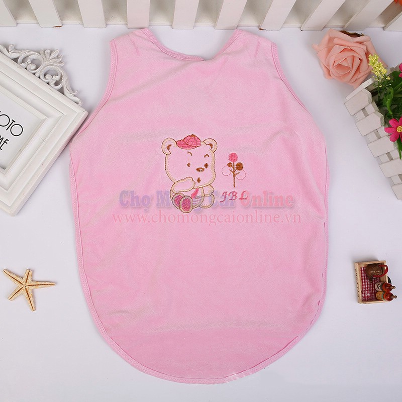 Túi ngủ kiểu yếm một lớp, chất liệu cotton mềm mại, kiểu xỏ yếm tiện lợi với miếng dính sau và dây luồn giúp chăn không tuột hoặc xô lệch khi bé cựa quậy hay khi bế bé.